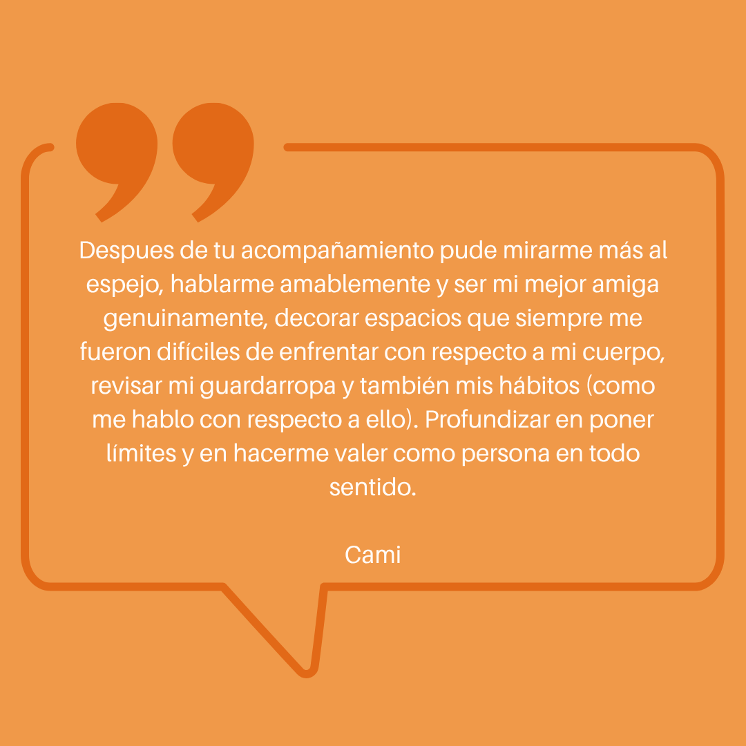 Es una consultoria terapéutica breve y enfocada, creada especialmente para mujeres que están cansadas de vivir desde el juicio hacia su cuerpo y su alimentación y quieren dejar de exigirse, de esconderse o de intentar cambiar constantemente su apariencia para sentirse mejor.