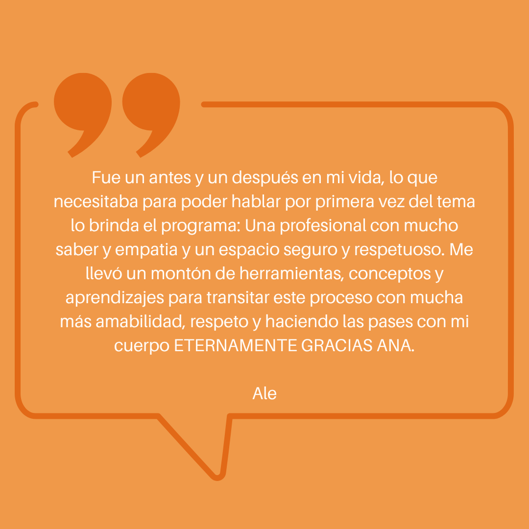 Este programa tiene una estructura definida, con inicio y cierre. Está centrado exclusivamente en la relación con el cuerpo y ofrece un entrenamiento semanal con recursos y acompañamiento, diferente al abordaje clínico tradicional.